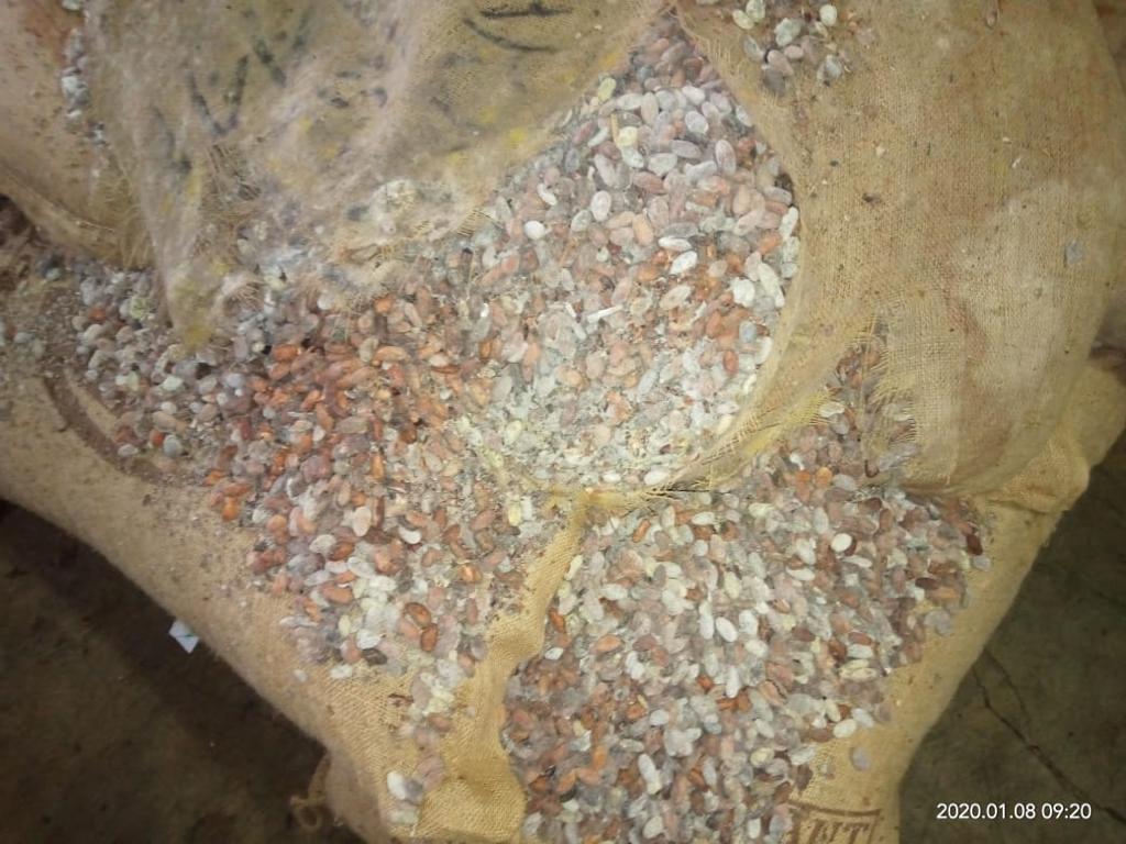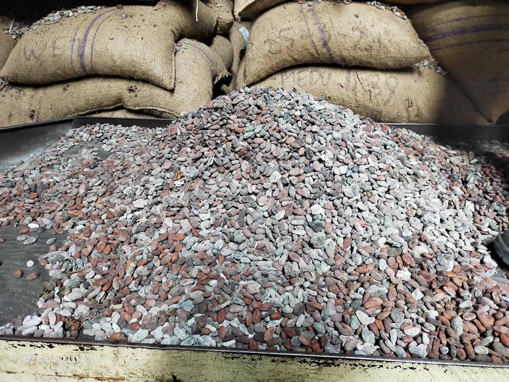 – flat, unripe, small and broken cocoa beans