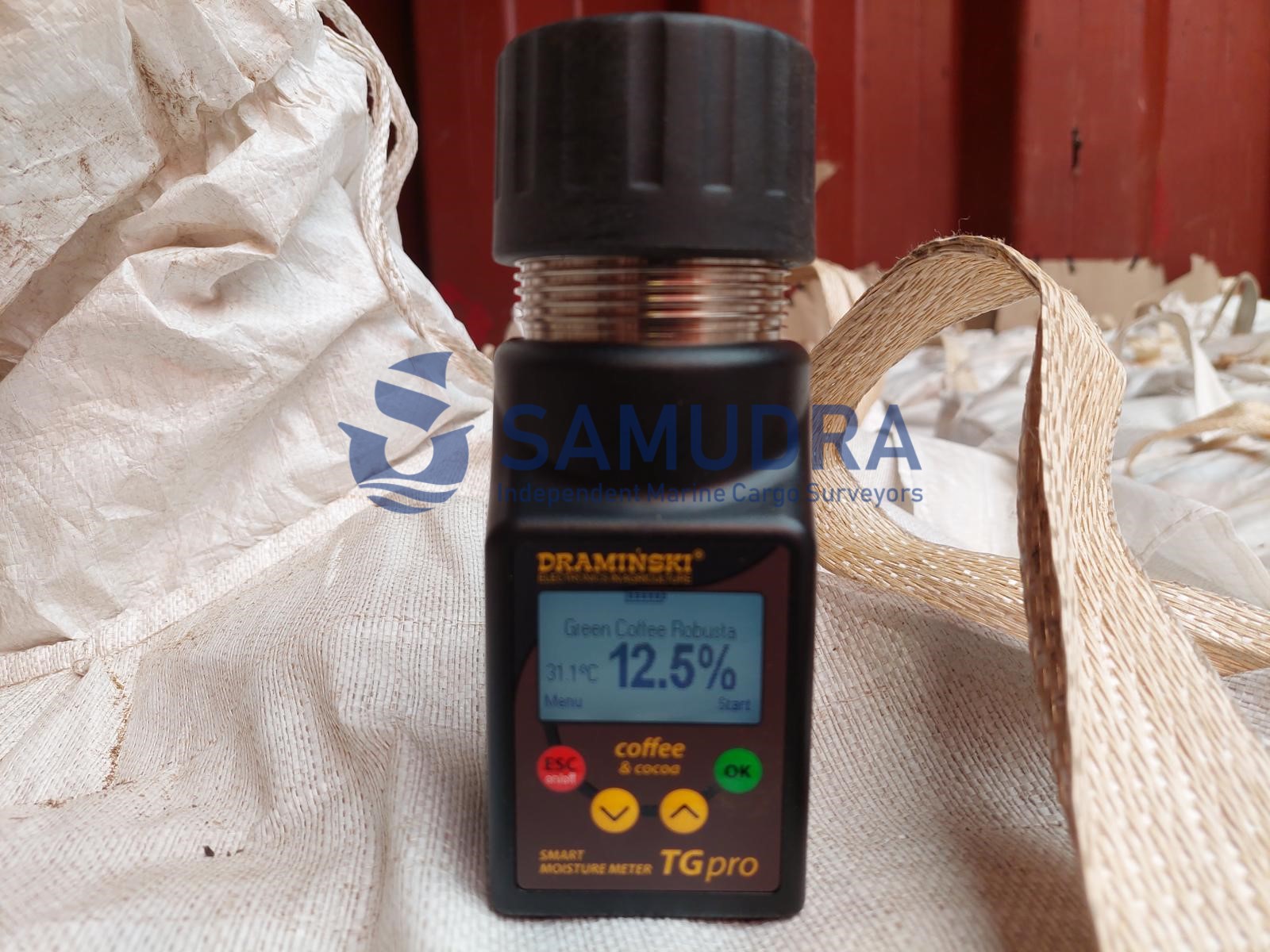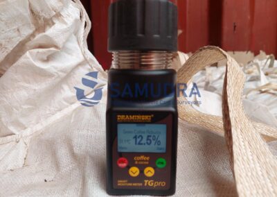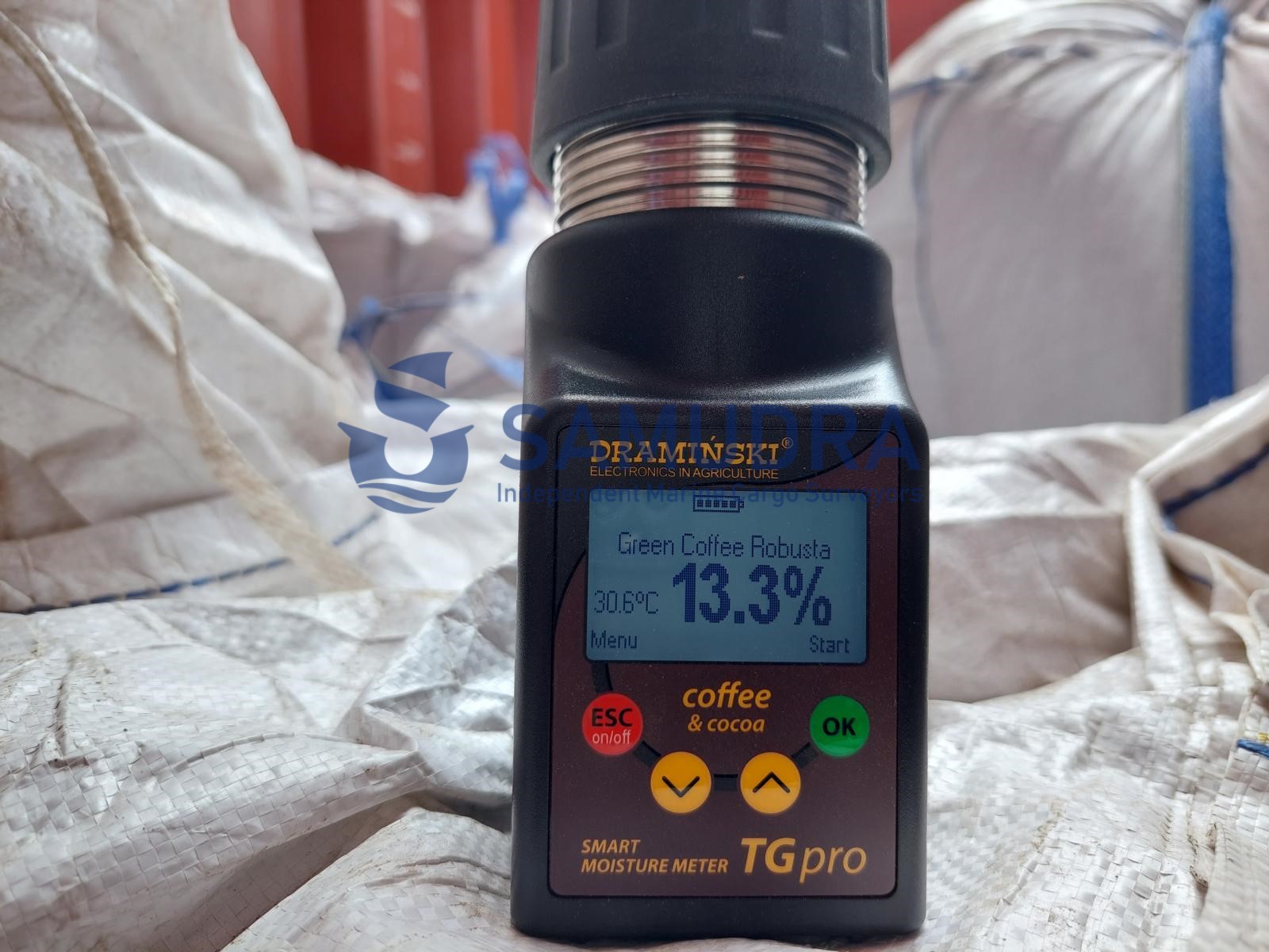 The cargo sampling is carried out randomly from several sources in daily basis. All the coffee beans samples will be tested individually to determine the moisture content by moisture meter.