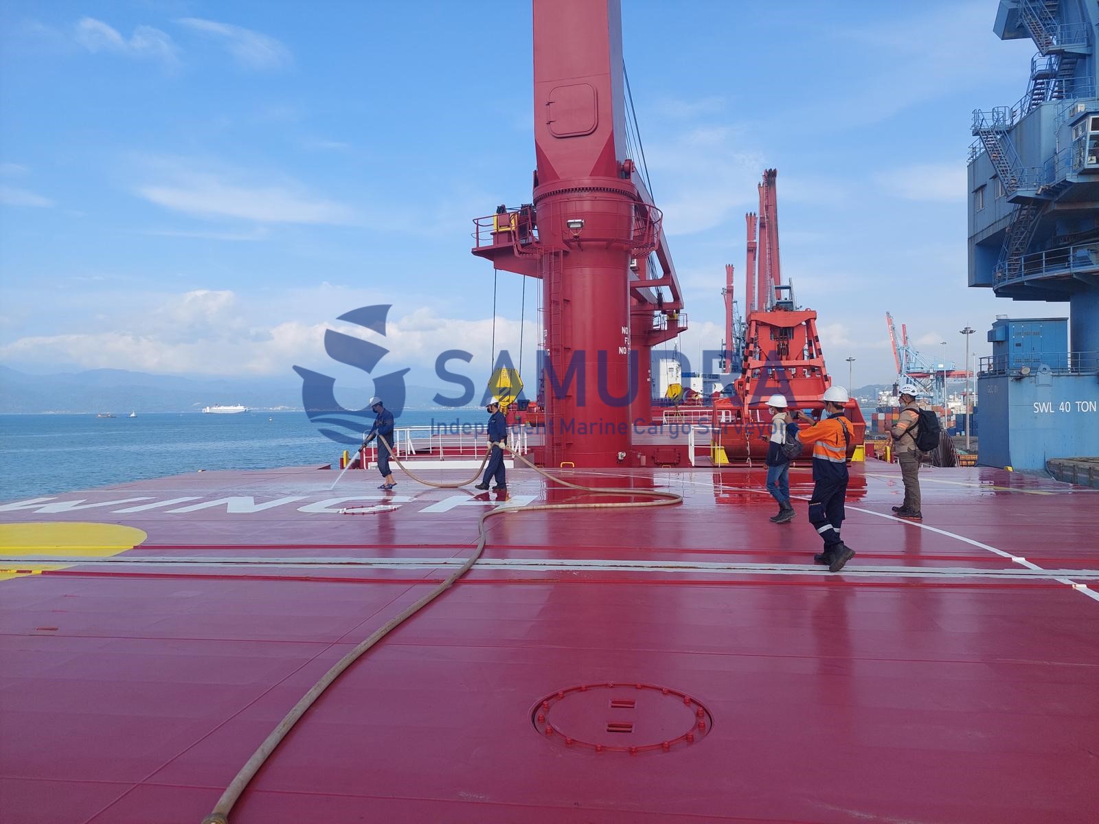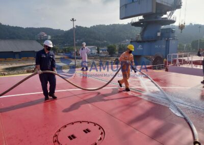 The Hose test is carried out to check the joint and cover of the hold by sprayed over water with pump pressure at 3.0 kgf/cm2 to observe for any leakages occurring. To pass the hose test, the surveyor must be found the hatch cover and the weather deck of the hold were sufficient watertight and in satisfactory condition.